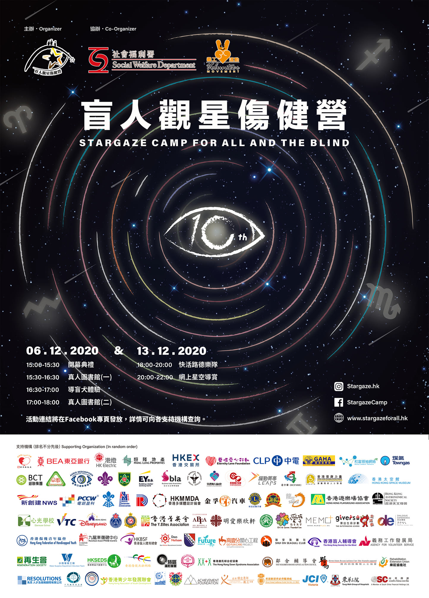 一系列活動,包括派發防疫物資及線上星空導賞,於無障礙的同一星空下,無分你我實踐傷建共融的理念。
