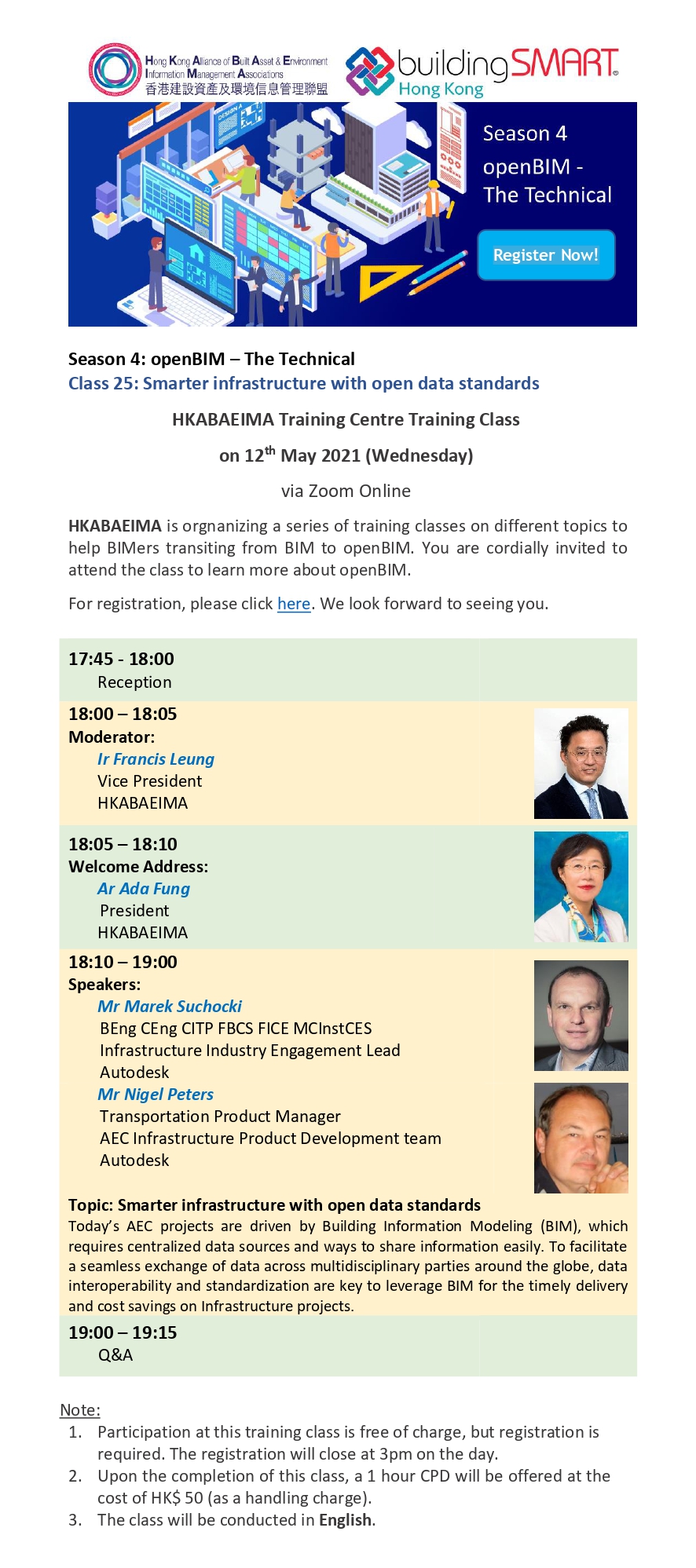 HKABAEIMA Training Centre Training Class Season 4: openBIM – The Technical Smarter Infrastructure with Open Data Standards