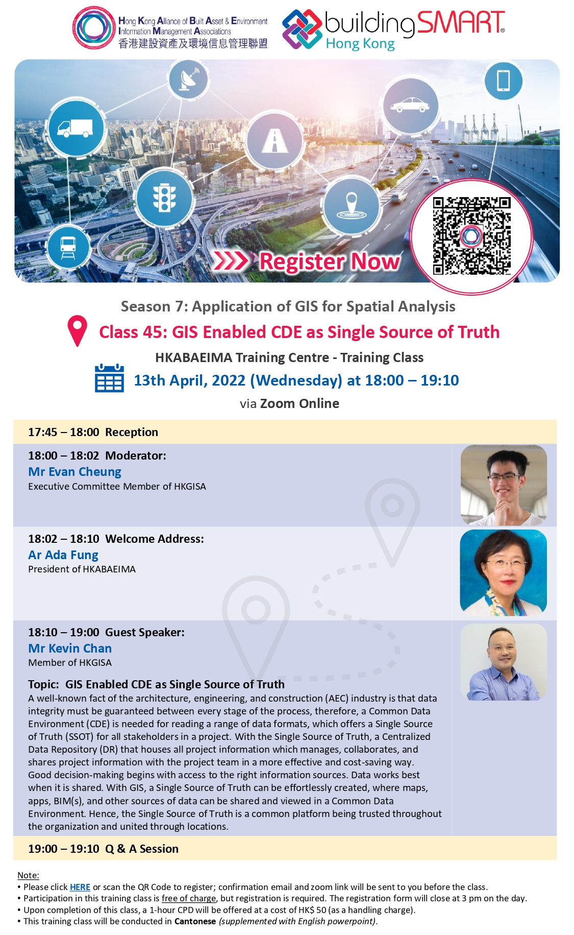 May 11, 2022The Hong Kong Alliance of Built Asset & Environment Information Management Associations (HKABAEIMA) will hold the training class (GIS Enabled CDE as Single Source of Truth) in virtual meeting room on 13th April, 2022 (Wednesday). Our Institute (HKICBIM) as one of HKABAEIMA’s founding members, we are honored to invite all HKICBIM members to join the series of training classes on different topics to strengthen the understanding of transiting from BIM to openBIM.