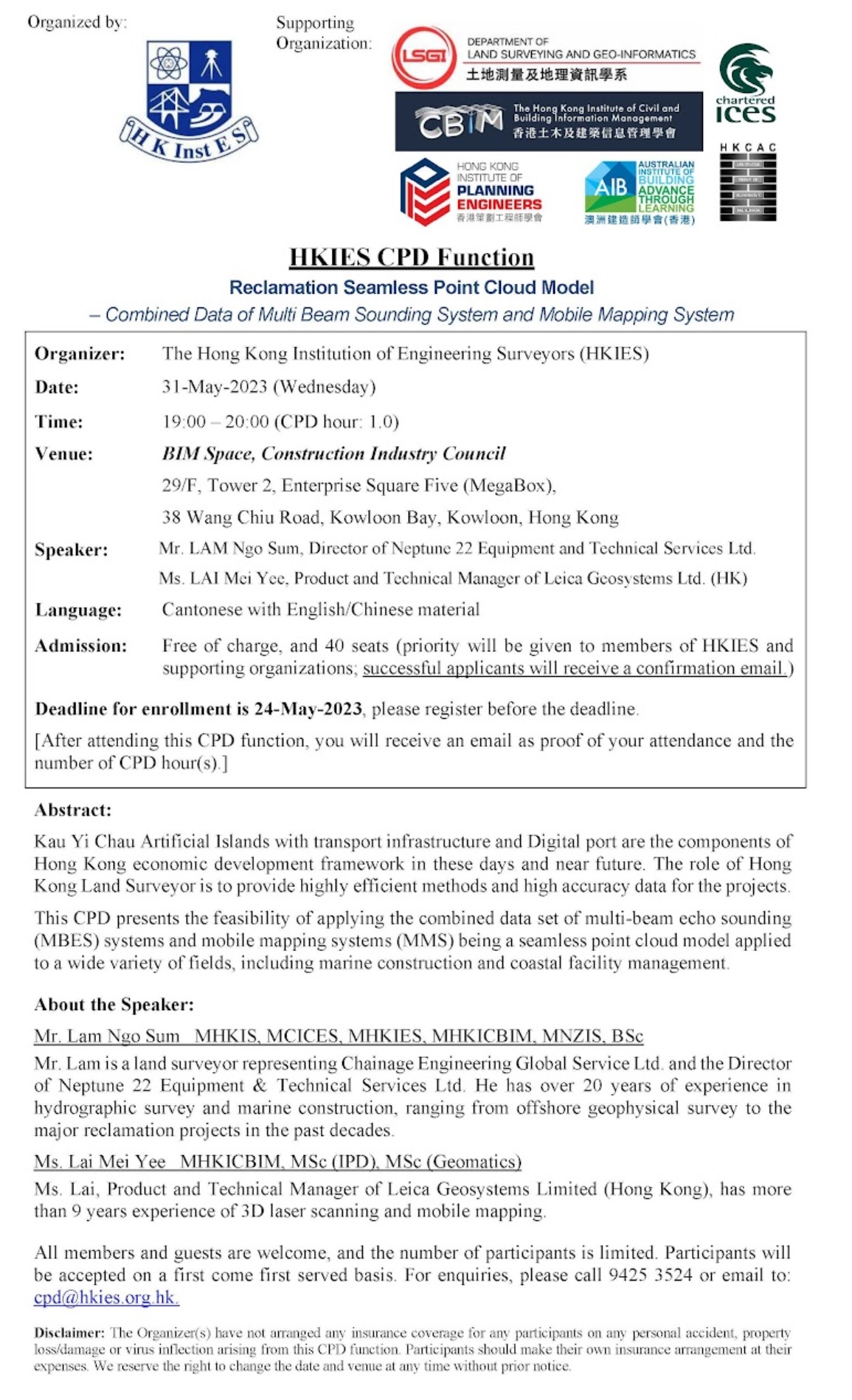 HKABAEIMA Training Centre Training Class – Season 8 Class 55 31/5/2023May 31, 2023Surveying Consultant at the Eastern Dragon Boat Race 18/6/2023June 18, 2023 Share Related postsHKABAEIMA Training Centre Training Class – Season 10 Class 64 10/2/2026Read moreTechnical Visit to Development of the Loop 7/2/2026Read morePGBC Technical Seminar – Open BIM Open Opportunities 10/1/2026Read more